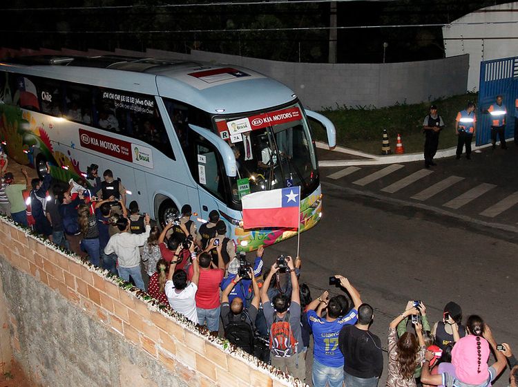 La delegación nacional fue trasladada en el bus oficial, el que fue escoltado por vehículos policiales hasta Toca de Raposa II, la casa del Cruzeiro, lugar donde el equipo se concentrará.