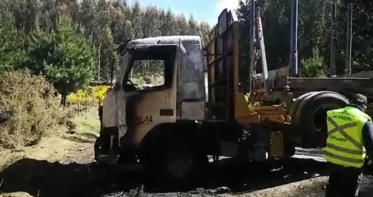Una persona fue detenida por Carabineros en un camino interior del fundo La Victoria, en la comuna de Lebu, donde esta mañana se registró un ataque incendiario que dejó al menos cuatro máquinas forestales y un camión destruidos.